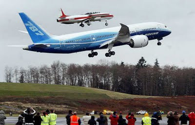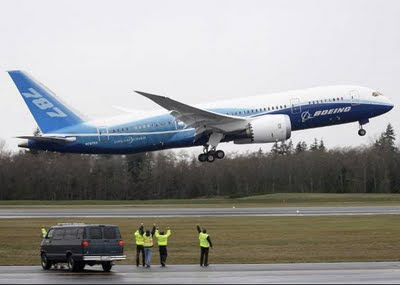 Com mais de dois anos de atraso, o revolucionário novo avião da Boeing, o 787 Dreamliner, decolou nesta terça-feira (15) para seu primeiro voo teste. A decolagem ocorreu em Paine Field, Everett, no Estado de Washington. Os pilotos Michael Carriker e Randall Neville farão uma série de testes básicos e checagem de sistemas no voo, que deve durar quatro horas.